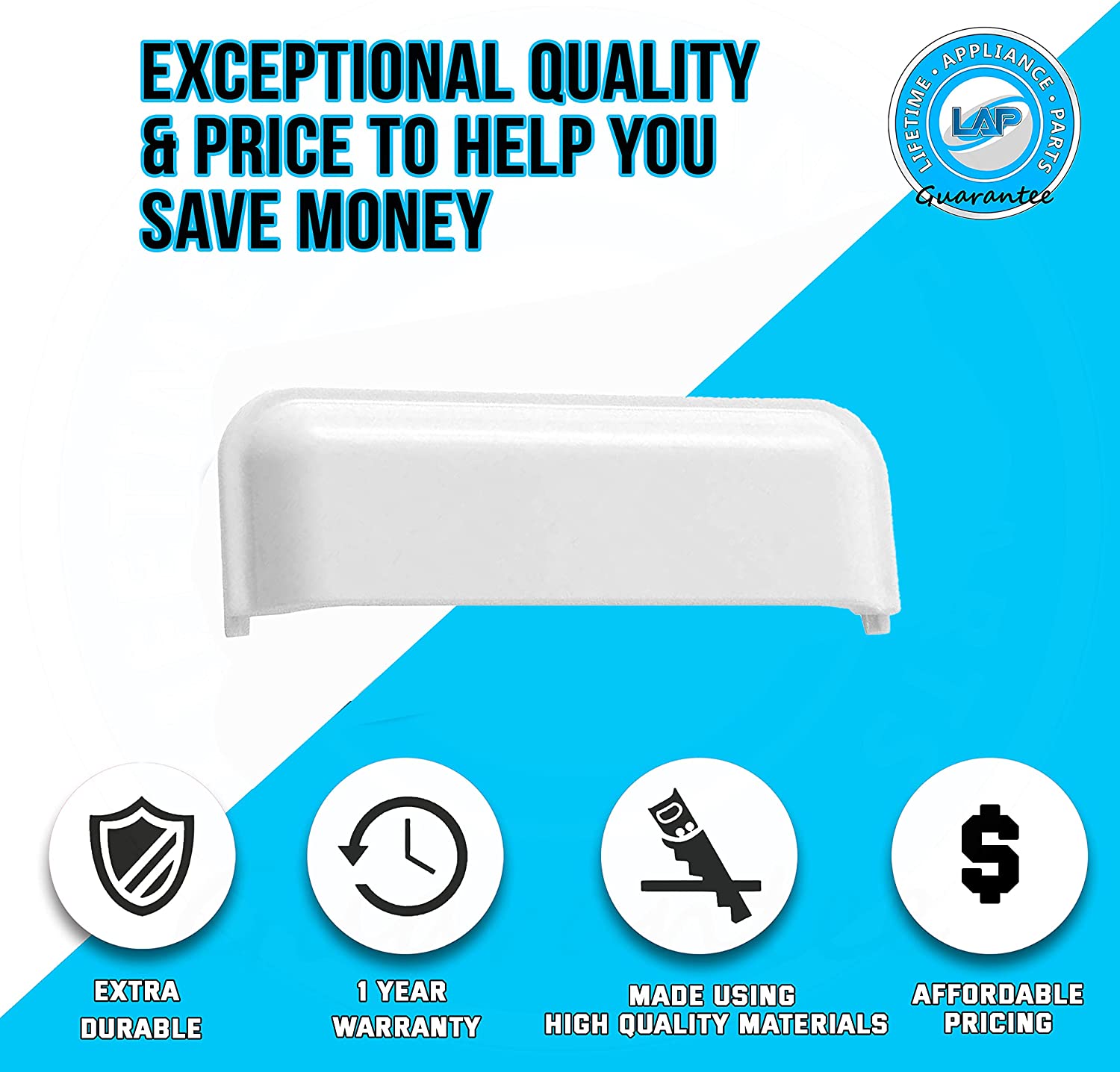 Lifetime Appliance W10861225 Door Handle Compatible with Whirlpool Dryer - 1 Year Warranty